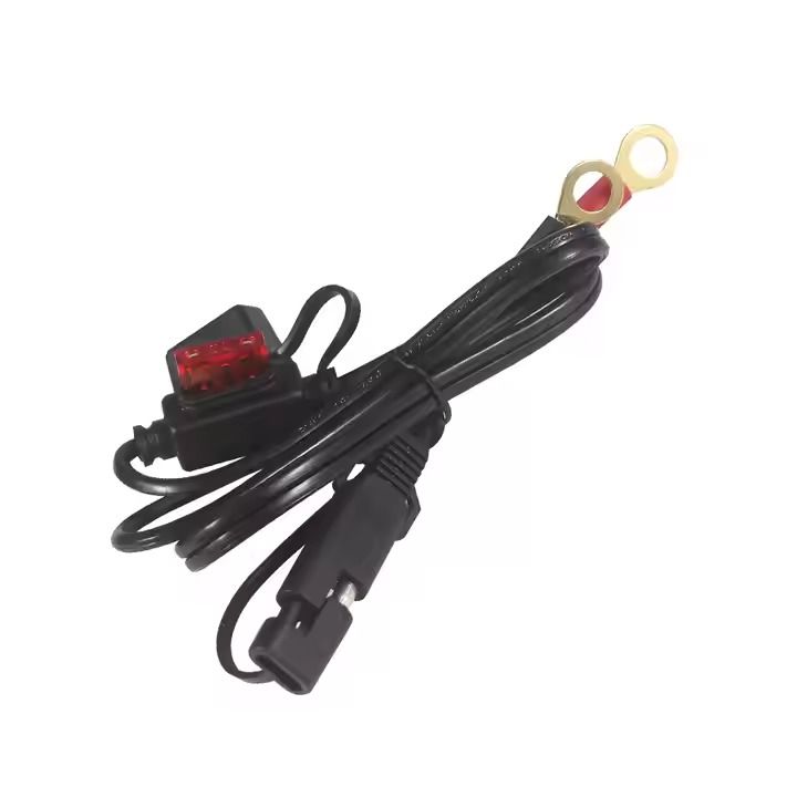 El Cable de batería con terminal de anillo SAE es una solución confiable de conexión rápida para mantener y cargar baterías de 12 V en motocicletas, automóviles, vehículos todoterreno (ATV), vehículos recreativos (RV) y más. Equipado con un fusible en línea incorporado, asegura la protección contra sobrecorriente mientras mantiene una conexión segura a la batería utilizando terminales de anillo M6 o M8. Comúnmente utilizado con cargadores de goteo, paneles solares y mantenedores de batería.